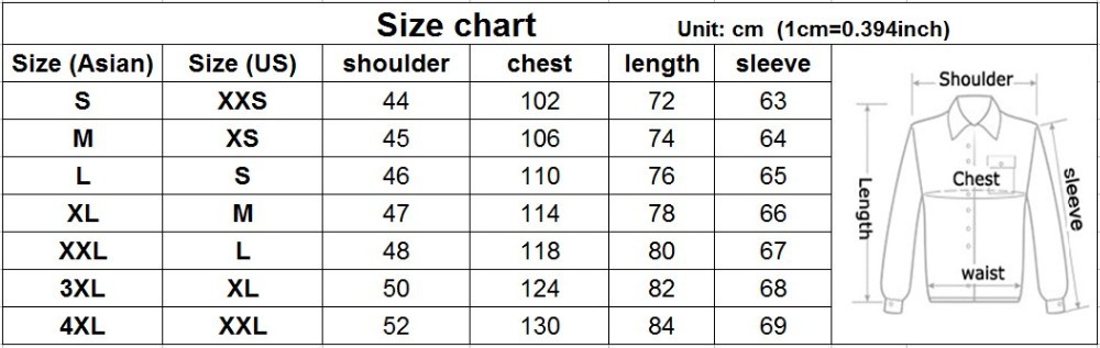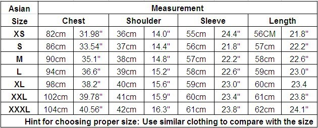* Extra extra extra large (XXXL): chest size 51–53 inches (130–135cm)